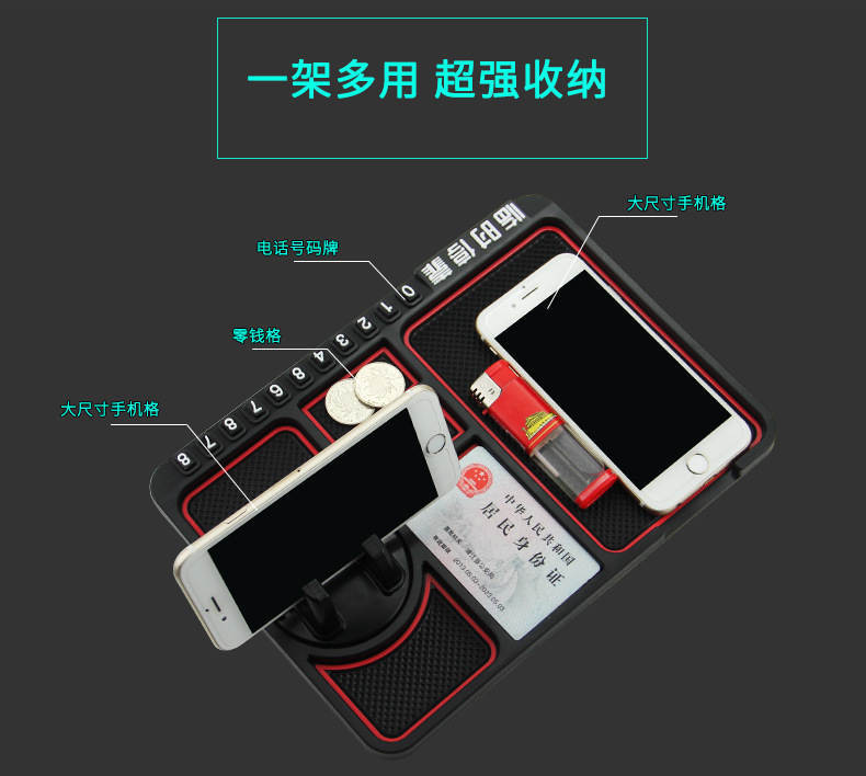 3、當你開車時,可以將手機垂直固定在防滑墊內,方便查看地圖。垂直放置時,可以方便的觸摸手機屏幕。
